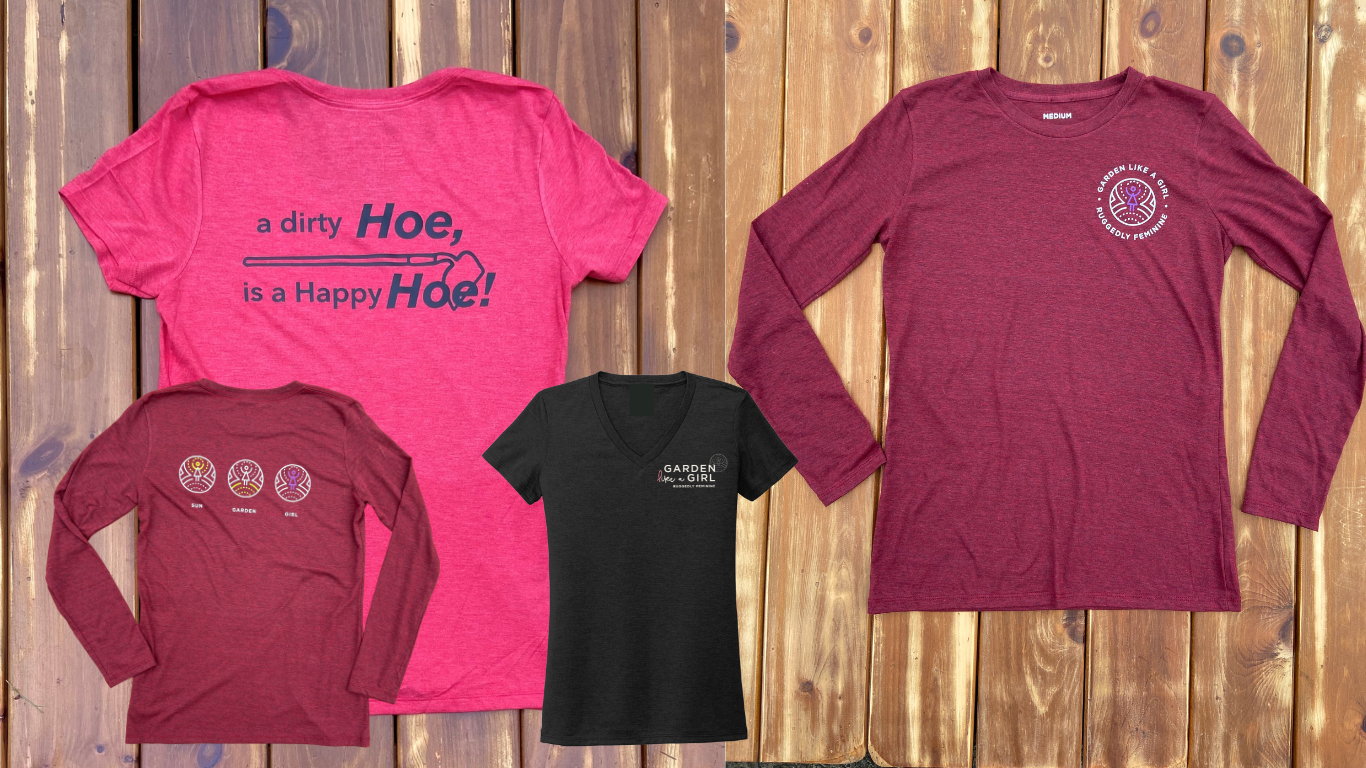 Our women's garden gloves, hand tools, and sustainable T-shirts are durable, designed to fit the female gardener, and enhance your garden experience!