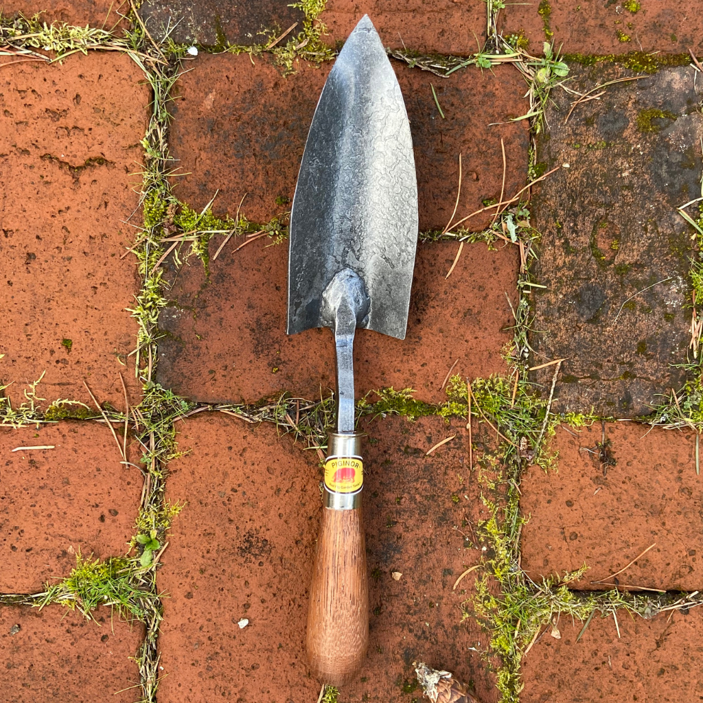 Our hand trowel is the perfect size for women and works well for transplanting, digging, and weeding your flower beds. Hand forged in Portland, OR by Red Pig Tools the blade has sharpened edges and comes to a point so it easily slides into the soil and can even handle hard pack. Measuring 13.5" long with a blade that is 3" x 6.5" that's attached to tapered hickory handle the Hand Trowel is a must have for all female gardeners.